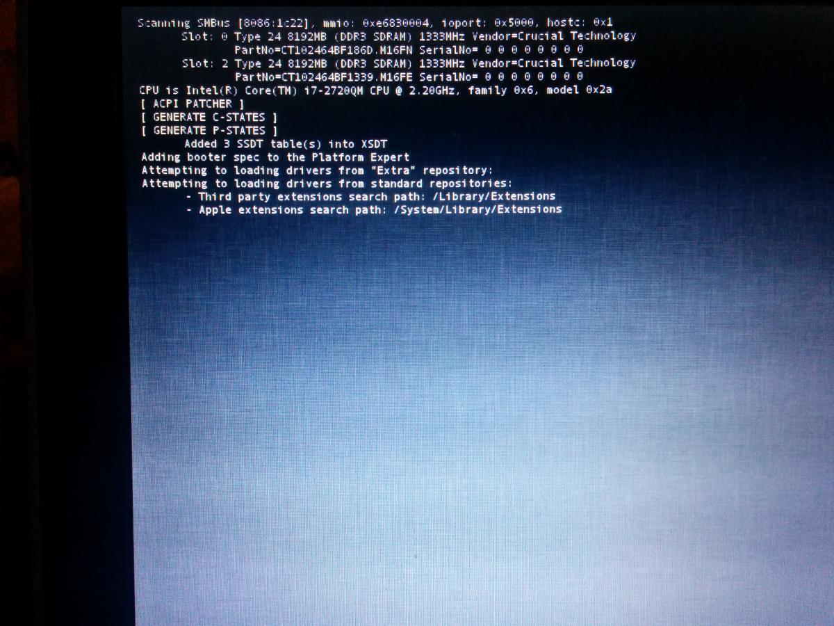 Also, earlier it couldn't boot because of not being able to find mach_kernel, so I copied System/Library/Kernels/kernel to the root of the drive and renamed it to mach_kernel Here is my clover EFI folder: EFI.zip- 40 replies