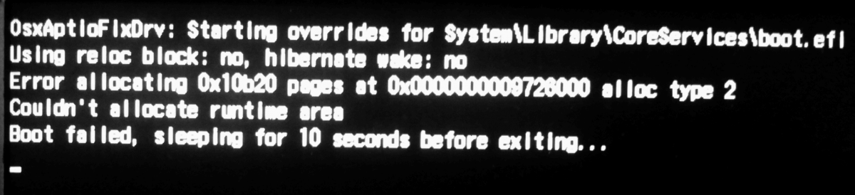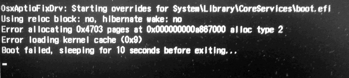 First of all Thank You Jake Lo for your work with Jake's config.plist Clover didnt load, then I returned to official EFI folder ( is to say in USB installer I deleted EFI folder made by Bronxteck, placed official EFI folder and then replaced config.plist with Jake's version. After that Clover loaded, but further all the same: normal OS X boot ended with restart, without cache OS X boot ended with same text: OsxAptioFixDrv: Starting ...