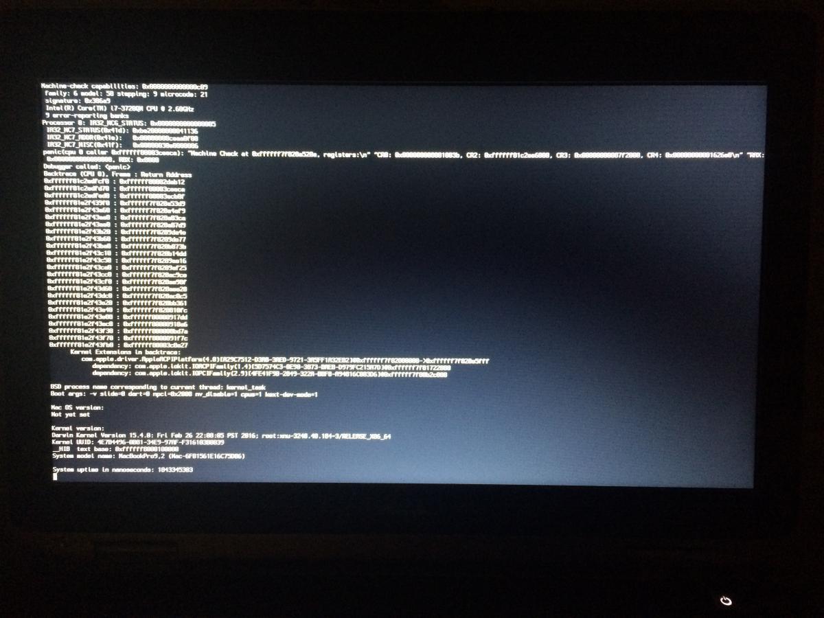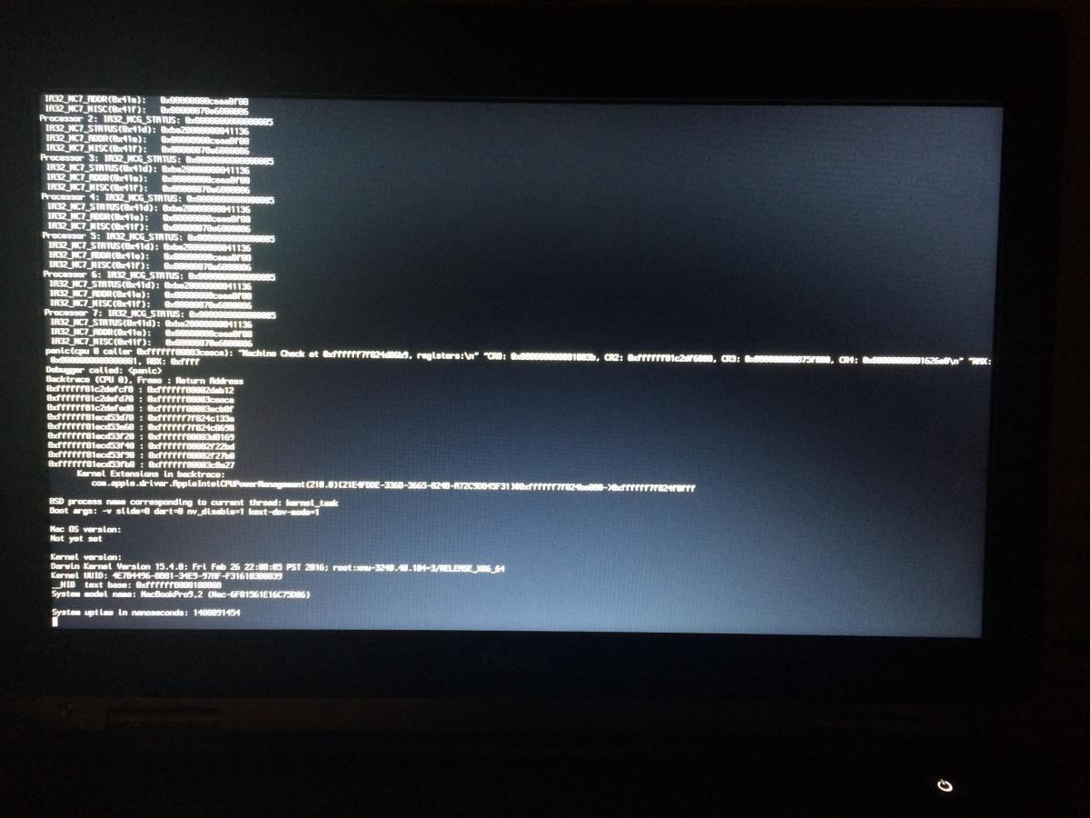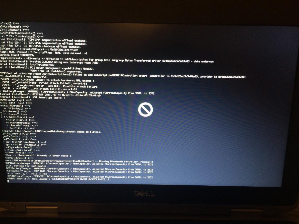 I have a Dell e6430 with a 1600x900 screen, NVS5200M, 16GB RAM, and i7-3720MQ. I have followed the main guide for El Capitan, followed step 2 choosing the e6430.zip, and applying the fixes referenced in post 4. There was another thread here which suggested cpus=1 and asus pm fix, this allowed me to get to the current point where i'm stuck - waiting for root device, hazard symbol, and corrupted screen. I also downgraded my bios to A11. Any thoughts? Are there more custom changes i need to make to my config.plist? Please see attached photo of my current status.