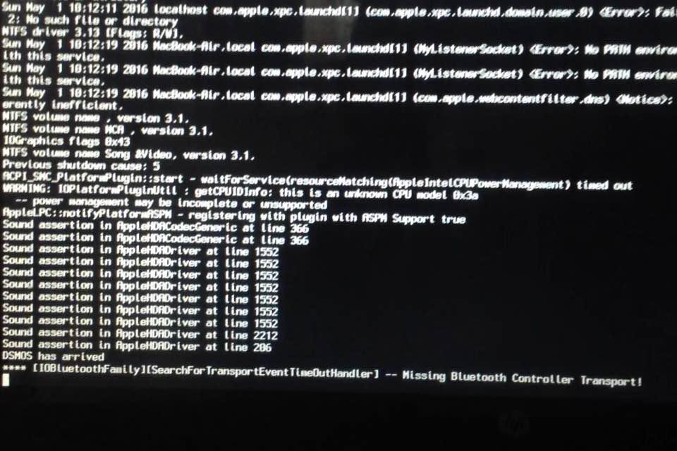 i install mac 10.11.3 in my HP g6 Laptop using clover Legacy bootable USB pan drive after booting getting this Error (Missing Bluetooth Controller Transport). And my laptop show black screen & restart. i try many time but getting same error.