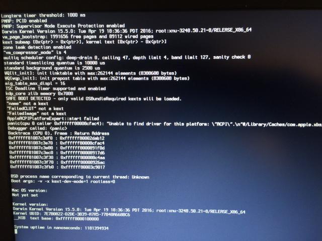 Hmm... Not sure why that would be the case. I'm just having the Clover EFI V2 app set up the EFI partition for me with the following settings: --Install for UEFI booting only --Install Clover in the ESP --OsxAptioFixDrv-64 under the Drivers64UEFI options [should I perhaps be using the OsxAptioFix2Drv-64 option instead??] Boot Settings-- I'm seeing the following boot settings which come from my model-specific folder: slide=0 dart=0 nv_disable=1 kext-dev-mode=1 But when I check the Clover options after booting from my USB stick I see the following: kext-dev-mode=1 rootless=0 I just tried changing the settings to the first set of settings (plus -v) and got the same ACPI error. Any suggestions???? -