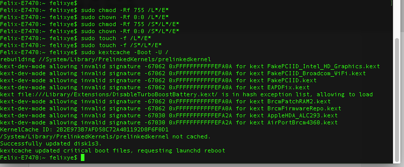 I ran kextcache, after I copy kext. Will DSDT file affect? Such as some IDs. But I can not see allowing invalid signature BrcmFirmwareRepo.kext and BrcmPatchRAM2.kext