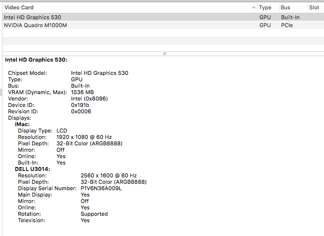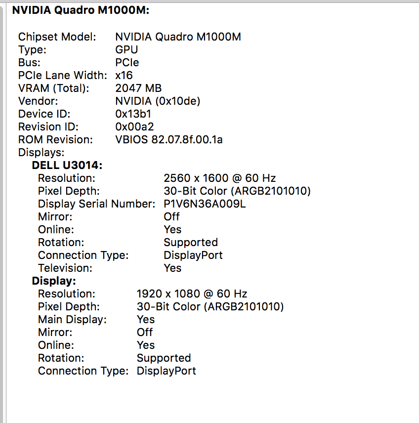 Jake Lo Great you got it working. I saw that in your config when you first posted. but I thought you might be just experimenting with the settings. Anyway Im glad its working. My laptop screen going to black at end of boot sequence, runs correct some time for a few days. I could replicate the problem on desktop Hacks with Displayport. i need to switch on/off monitor there. Laptop also shows the connected display as DISPLAYPORT. Any connection? Have also replicated the problem in three different DELL 7510 with same configs as mine. How do you intend to fix brightness control for NVIDIA? Did you have the IPS Display. do you get 10bit? I get, but if it goes off then i need to use switchresx. any OS X option?