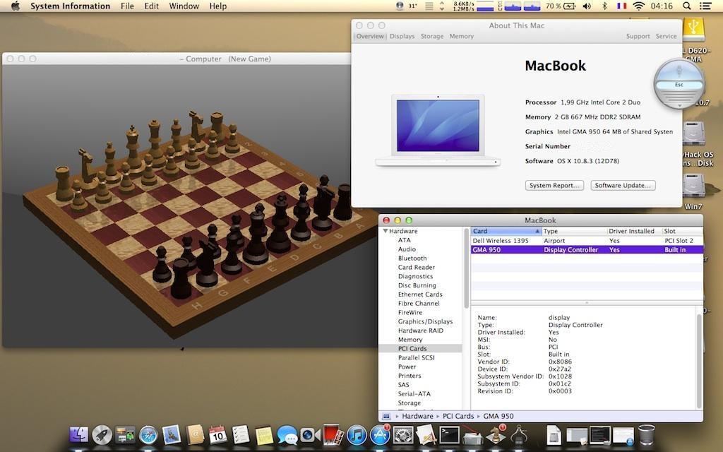 Hi I have fully working Snow Leopard 10.6.8 on my Dell Latitude D620, in About this mac and System profiler the processor is detected as a 1.66 GHz Core 2 Duo, But i have a Core Duo. This is not important, but i want to know why it happen and if is possible, fix it. I've configured my build using EDP. I also tried extracting my own dsdt and don't work. I reiterate, isn't important, but if anyone have an answer i will be happy. Sorry for my bad english. -