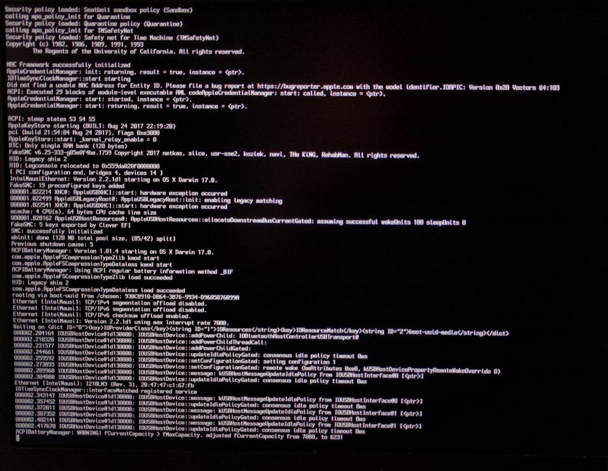 Hello all! This is the guide I am following: https://osxlatitude.com/index.php?/topic/8506-dell-latitude-inspiron-precision-clover-guide/&do=findComment&comment=54632 I've been toying with this E5450 for a while now and have finally gotten some progress, turns out I was an idiot and didn't configure the Bios properly: (I missed this) 2. Press F2 to configure the BIOS Sata Operaton -> AHCI Secure Boot -> Disabled Boot List Option -> UEFI. Enable Legacy Option Rom Apply and Exit So now I am getting I'm getting past the initial loading but it bombs out with this kernel panic: Some notes: Boot pack - I used this one: Broadwell - (See Note2 below) E5450_HD5500.zip 418.94KB 442 downloads Updates: I followed note to check for updates and replaced this kext: E7x70, E7x50, E5450, Precision 7510 AppleHDA_ALC293.kext.zip 13.26KB 385 downloads Anyone have a red hot clue what I did wrong? Thanks for reading. Eternally grateful