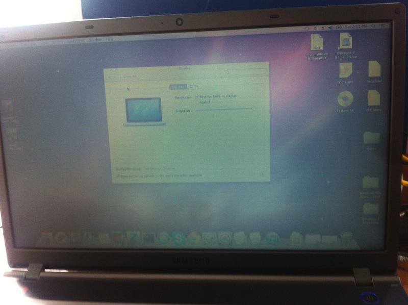 Hi everyone I have a difficulty in HD4000. I searched many times, many keywords, and I wrote others forum about my problem but I can't solve my problem for 2-3 weeks. My laptop is using Clover UEFI If ig-platform-id is 01660003, hdmi is working but internal screen is tinted (dim? foggy? cloudy?) like this picture but interesting, I can control backlight brightness and working sleep. (so I think My laptop may use 01660003, only have to solve tinted screen) If ig-platform-id is 0166000A or B, Internal screen is fully working but hdmi is not working, also I can't control backlight brightness, don't working sleep(black screen after wake) I tried this patch very many times,(on 0166000A) but I coudn't solve my problem. https://osxlatitude.com/index.php?/topic/2945-guide-for-enabling-vga-and-hdmi-in-intel-hd4000-gpu/ I found the questions is very similar my symptom(but I couldn't find the solution also) http://www.insanelymac.com/forum/topic/286934-hd4000-gray-white-tinted-display-problem/ and I read this topic(about samsung seires 5 530u3c-a01) but couldn't help me. https://osxlatitude.com/index.php?/topic/2520-ml-on-samsung-serie-5-530u3c-a01/ Help me please Thanks for reading Have a Nice Day P.S. My laptop Informations SAMSUNG NT530U3C-A7HB : Intel Core i5 3337u, HD4000, 12(4+8)gb ram, 1366x768, hdmi, vga, 128gb SSD, ALC269, Elan TouchPad, OS X 10.9 Mavericks Clover Bootloader UEFI And my config.plist <?xml version="1.0" encoding="UTF-8"?> <!DOCTYPE plist PUBLIC "-//Apple//DTD PLIST 1.0//EN" "http://www.apple.com/DTDs/PropertyList-1.0.dtd"> <plist version="1.0"> <dict> <key>ACPI</key> <dict> <key>DSDT</key> <dict> <key>Debug</key> <false/> <key>DropOEM_DSM</key> <false/> <key>Fixes</key> <dict> <key>AddDTGP_0001</key> <true/> <key>AddMCHC_0008</key> <true/> <key>FakeLPC_0020</key> <true/> <key>FixAirport_4000</key> <true/> <key>FixDarwin_0002</key> <true/> <key>FixDisplay_0100</key> <true/> <key>FixFirewire_0800</key> <false/> <key>FixHDA_8000</key> <false/> <key>FixHPET_0010</key> <true/> <key>FixIDE_0200</key> <false/> <key>FixIPIC_0040</key> <true/> <key>FixLAN_2000</key> <true/> <key>FixSATA_0400</key> <false/> <key>FixSBUS_0080</key> <true/> <key>FixShutdown_0004</key> <true/> <key>FixUSB_1000</key> <true/> </dict> <key>Name</key> <string>DSDT.aml</string> <key>ReuseFFFF</key> <false/> <key>SlpSmiAtWake</key> <true/> <key>SuspendOverride</key> <true/> </dict> <key>DropTables</key> <array> <dict> <key>Signature</key> <string>DMAR</string> </dict> <dict> <key>Signature</key> <string>SSDT</string> <key>TableId</key> <string>CpuPm</string> </dict> </array> <key>SSDT</key> <dict> <key>DropOem</key> <true/> <key>Generate</key> <dict> <key>CStates</key> <true/> <key>PStates</key> <true/> </dict> <key>PLimitDict</key> <integer>0</integer> <key>UnderVoltStep</key> <integer>0</integer> </dict> <key>SlpSmiAtWake</key> <true/> </dict> <key>Boot</key> <dict> <key>Arguments</key> <string>-v</string> <key>DefaultVolume</key> <string>OS X Mavericks</string> <key>Legacy</key> <string>LegacyBiosDefault</string> <key>LegacyBiosDefaultEntry</key> <integer>2</integer> <key>Log</key> <true/> <key>Timeout</key> <integer>1</integer> <key>XMPDetection</key> <true/> </dict> <key>Devices</key> <dict> <key>Audio</key> <dict> <key>Inject</key> <string>Detect</string> </dict> <key>FakeID</key> <dict> <key>LAN</key> <string>0x0</string> <key>SATA</key> <string>0x0</string> <key>WIFI</key> <string>0x0</string> <key>XHCI</key> <string>0x0</string> </dict> <key>USB</key> <dict> <key>AddClockID</key> <true/> <key>FixOwnership</key> <true/> <key>Inject</key> <true/> </dict> </dict> <key>DisableDrivers</key> <array> <string>Nothing</string> </array> <key>GUI</key> <dict> <key>Hide</key> <array> <string>HD(1,GPT,97F45A31-6A8D-49DB-BEB3-3029E73252AA</string> </array> <key>Language</key> <string>en:0</string> <key>Mouse</key> <dict> <key>Enabled</key> <false/> </dict> <key>Scan</key> <dict> <key>Entries</key> <true/> <key>Legacy</key> <string>last</string> <key>Tool</key> <true/> </dict> <key>ScreenResolution</key> <string>1366x768</string> <key>Theme</key> <string>metal</string> </dict> <key>Graphics</key> <dict> <key>DualLink</key> <integer>1</integer> <key>Inject</key> <dict> <key>ATI</key> <false/> <key>Intel</key> <true/> <key>NVidia</key> <false/> </dict> <key>InjectEDID</key> <true/> <key>LoadVBios</key> <false/> <key>PatchVBios</key> <true/> <key>ig-platform-id</key> <string>0x0166000B</string> </dict> <key>KernelAndKextPatches</key> <dict> <key>AppleRTC</key> <false/> <key>AsusAICPUPM</key> <true/> <key>Debug</key> <false/> <key>KernelCpu</key> <false/> <key>KernelLapic</key> <false/> <key>KextsToPatch</key> <array> <dict> <key>Comment</key> <string>External icons patch</string> <key>Find</key> <data> RXh0ZXJuYWw= </data> <key>Name</key> <string>AppleAHCIPort</string> <key>Replace</key> <data> SW50ZXJuYWw= </data> </dict> </array> </dict> <key>RtVariables</key> <dict> <key>LogEveryBoot</key> <string>10</string> <key>LogLineCount</key> <integer>3000</integer> <key>MountEFI</key> <true/> </dict> <key>SMBIOS</key> <dict> <key>BiosReleaseDate</key> <string>04/22/11</string> <key>BiosVendor</key> <string>Apple Computer, Inc.</string> <key>BiosVersion</key> <string>MBP81.88Z.0047.B0E.1104221557</string> <key>Board-ID</key> <string>Mac-94245B3640C91C81</string> <key>BoardManufacturer</key> <string>Apple Computer, Inc.</string> <key>BoardType</key> <integer>10</integer> <key>ChassisAssetTag</key> <string>MacBook-Aluminum</string> <key>ChassisManufacturer</key> <string>Apple Computer, Inc.</string> <key>ChassisType</key> <integer>8</integer> <key>Family</key> <string>MacBook Pro</string> <key>Manufacturer</key> <string>Apple Computer, Inc.</string> <key>Mobile</key> <true/> <key>ProductName</key> <string>MacBookPro8,1</string> <key>SerialNumber</key> <string>C02HG42TDH2G</string> <key>Version</key> <string>1.0</string> </dict> <key>SystemParameters</key> <dict> <key>InjectKexts</key> <true/> <key>InjectSystemID</key> <true/> 