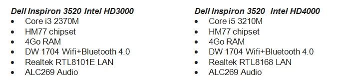 This is a guide for the Inspiron 3520 with 10.8/10.9 Specs of i3-2370M HD3000 model as obtained with lspci -nn command: 00:00.0 Host bridge [0600]: Intel Corporation 2nd Generation Core Processor Family DRAM Controller [8086:0104] (rev 09) 00:02.0 VGA compatible controller [0300]: Intel Corporation 2nd Generation Core Processor Family Integrated Graphics Controller [8086:0116] (rev 09) 00:16.0 Communication controller [0780]: Intel Corporation Panther Point MEI Controller #1 [8086:1e3a] (rev 04) 00:1a.0 USB controller [0c03]: Intel Corporation Panther Point USB Enhanced Host Controller #2 [8086:1e2d] (rev 04) 00:1b.0 Audio device [0403]: Intel Corporation Panther Point High Definition Audio Controller [8086:1e20] (rev 04) 00:1c.0 PCI bridge [0604]: Intel Corporation Panther Point PCI Express Root Port 1 [8086:1e10] (rev c4) 00:1c.3 PCI bridge [0604]: Intel Corporation Panther Point PCI Express Root Port 4 [8086:1e16] (rev c4) 00:1c.5 PCI bridge [0604]: Intel Corporation Panther Point PCI Express Root Port 6 [8086:1e1a] (rev c4) 00:1d.0 USB controller [0c03]: Intel Corporation Panther Point USB Enhanced Host Controller #1 [8086:1e26] (rev 04) 00:1f.0 ISA bridge [0601]: Intel Corporation Panther Point LPC Controller [8086:1e5d] (rev 04) 00:1f.2 SATA controller [0106]: Intel Corporation Panther Point 6 port SATA Controller [AHCI mode] [8086:1e03] (rev 04) 00:1f.3 SMBus [0c05]: Intel Corporation Panther Point SMBus Controller [8086:1e22] (rev 04) 07:00.0 Network controller [0280]: Atheros Communications Inc. AR928X Wireless Network Adapter (PCI-Express) [168c:002a] (rev 01) 09:00.0 Ethernet controller [0200]: Realtek Semiconductor Co., Ltd. RTL8101E/RTL8102E PCI Express Fast Ethernet controller [10ec:8136] (rev 05) Credits @pokenguyen - For modifying DSDT to include IMEI injection, for patching the 3520 HD 4000 DSDT, and for helping me obtain native power management @durga - For working on the 3520 with Intel HD 4000 and uploading his /Extra to me @Bronxteck - For troubleshooting @Herve - For troubleshooting @Conti - For developing myHack @RehabMan @BpedMan @sontrg @Yeahoon - For developing the ALPS touchpad driver The Dell Wireless 1704 BT+WIFI device will NOT work. I replaced mine with a DW1515. BIOS Settings: - You must disable UEFI and go back to legacy boot - You must set SATA as AHCI - You must disable "Virtualization" (This can be re-enabled later. It works. Tested with VMware Fusion.) Step 1: Creating the myHack Installer: 1. Create the myHack installer like you normally would, following this: http://myhack.sojugarden.com/guide/. Be sure to use the bootpack I created that can be downloaded below! 2. Boot the myHack USB installer. 3. When it boots, open Disk Utility and partition/format the hard drive how you would like, using GUID partition tables. 4. Install OS X Mavericks like normal. 5. When myHack comes up and asks, select the bootpack extra from the USB drive, and remove any kexts that myHack recommends! First boot: 1. Make sure you boot verbose so you can see what is happening under the hood! 2. When Mavericks boots, immediately open Disk Utility and repair permissions. 3. Run myHack and then run myFix (Quick) 4. Reboot 5. Download "Installers" from below and open it. Run Chameleon Wizard and update Chameleon to the latest. 6. Run myHack and install my Extra 7. Re-run myHack and run myFix (Full) 8. Reboot 9. Update OS X to the latest 10. Install Chameleon, Kext Wizard, Chameleon Wizard, and VoodooHDA from the Installers.zip 11. Run myFix (Full) 12. Reboot Fixes: 1. Audio is about half volume. I have fixed this, but you MUST install VoodooHDA before the fix can be applied. Below, you will find a modified VoodooHDA.kext that enables full volume. To install this, open Kext Wizard and select "Installation". Select "Backup kexts to be replaced", just in case. Select my modified VoodooHDA with "Browse" and install it to /System/Library/Extensions. Close Kext Wizard and open myHack. Run myFix Full, as you want to repair permissions. Getting native power management: 1. Download pokenguyen's awesome utility called Hackintosh Vietnam Tool: http://www.osx86.net/files/file/3842-hackintosh-vietnam-ultimate-aio-tool/ 2. Open HVT and select the following: Kexts > Power Management > Patch AICPUPM 3. While still in HVT, also select: Tools > SSDT generator 4. Click "Continue" and HVT will patch AppleIntelCPUPowerManagement and place SSDT.aml in /Extra 5. Remove NullCPUPowerManagement.kext from /Extra/Extensions. Drag it to the desktop and SAVE it somewhere! 6. Open Chameleon Wizard and make the following options have a checkmark: Drop SSDT 7. Remove the following check marks in Chameleon Wizard: Generate C-States, Generate P-States. Click save. 8. Run myHack (Quick) 9. Reboot You MUST reinstall NullCPUPowerManagement BEFORE updating OS X! 1. Place NullCPUPowerManagement.kext back in /Extra/Extensions 2. Update OS X and restart 3. Re-do the instructions for "Getting native power management" Results: 1. Audio should work with VoodooHDA 2.8.2 (External mic works, internal does not.) 2. Graphics should work with my Extra 3. Touchpad/keyboard should work (2-finger scroll and gestures work!) 4. Power management works 5. Wireless should work if you replaced the card with a compatible card. (DW1515 works out of box) 6. Sleep works (Both clamshell and from the Apple Menu) 7. Display backlight works fully. 8. iCloud and App Store works. 9. Photo Booth works. 10. SD Card reader works. Tested with 32Gb SanDisk SDHC card. 11. Ethernet port works. (You will see this when running myHack: The kernel extension at “/System/Library/Extensions/myHack.kext/Contents/PlugIns/RealtekR1000SL.kext†is not from an identified developer but will still be loaded. This is normal, and I'm looking into an updated kext for it.) 12. For the HD 4000 model, you must perform the following for ethernet to work: System Preferences > Network > Ethernet > Advanced > Hardware tab > Select Configure Manually > Select "Half Duplex 10Bas