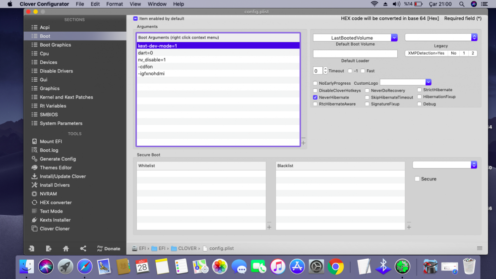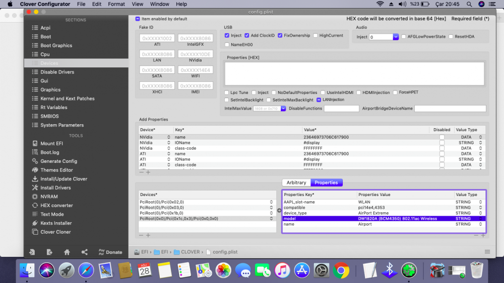 Hi, i've installed on my pc MacOS Mojave but after installation my pc, sometimes, crash giving kernel panic. I came to the conclusion that it is a random kernel panic because sometimes it starting up and other times it isn't starting up and this is caused for my Wi-Fi chipset (BCM94350ZAE), also, after a few minutes, the PC freezes with cursor slowing and Wifi has disconnected P.S Sorry for my Bad English and my incompetence. CLOVER.zip