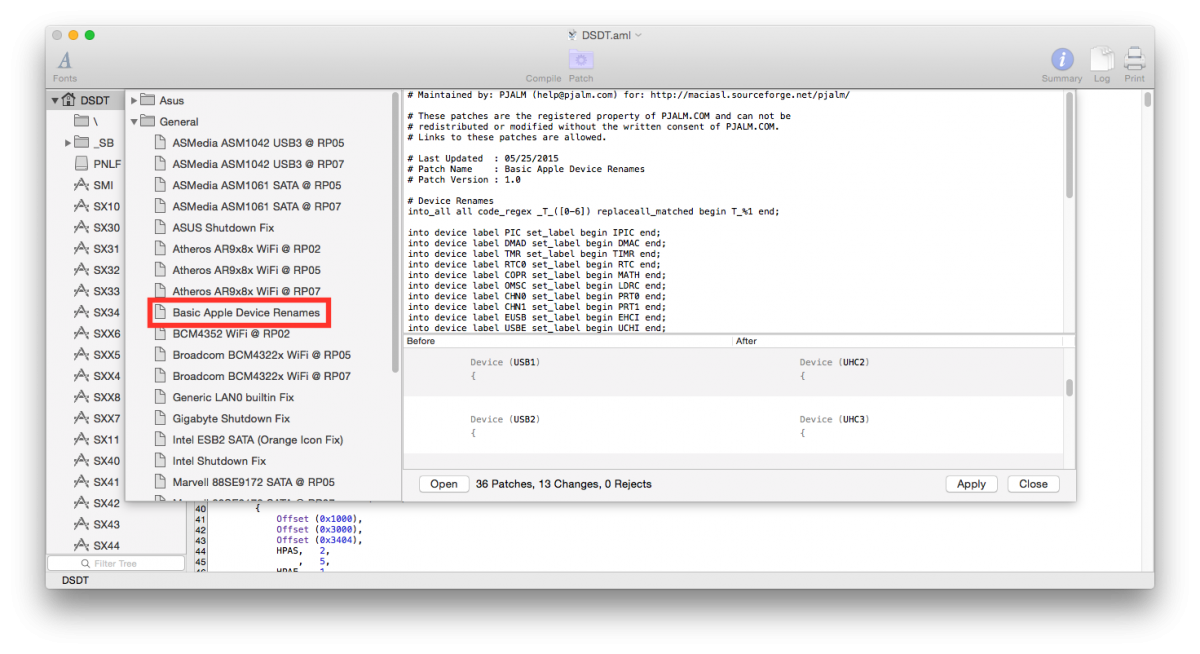 Hello dear Latitude D830 owners ! UPDATED FOR El Capitan Final Release : WORKS 100% ! UPDATED FOR macOS Sierra 10.12 Developer Preview ! See post #9 For those who tried to install 10.11 DP1, you may have problem booting your USB stick on your system and actually end up with a "still waiting for root device" error. After some research, I finally managed to successfully boot and install El Capitan on it by patching the DSDT from original bootpack for D830 Nvidia series. The patch is quite simple and you'll just need to edit your DSDT and apply PJAlms "Basic Apple Device Renames" available here. (just follow instructions). Basically, it will change this : Device (USB2) { Name (_ADR, 0x001D0001) // _ADR: Address Method (_PRW, 0, NotSerialized) // _PRW: Power Resources for Wake to this : Device (UHC3) { Name (_ADR, 0x001D0001) // _ADR: Address Method (_PRW, 0, NotSerialized) // _PRW: Power Resources for Wake Also, you must change device (ECHI) to device (EHC1). Actually, this the most important edit. Renaming USBx to UHCx doesn't really matters. However on my system, I still have 1 of the 3 ports that isn't working at all (they all works fine on Yosemite). It could be related to some errors in the proposed DSDT so if you see any, please report ! Fixed ! see below. Sleep/wake don't work on the other hand . Forgot to set Hibernate mode to 0 : sudo pmset -a hibernatemode 0 [EDIT] Thanks to Pokenguyen, stinga111 & VCH888, there's a guide to fix all USB related issues. However, DSDT edits may still be usefull. [EDIT 2] Attached is customized DummyUSBEHCIPCI.kext thanks to the mentioned Guide above and updated DSDT. Also : I found out that using a MacBookPro3,1 SMBios eliminates the need of using any extra kext since all ports are already configured for use with D830 hardware : - 6 PRT in EHC1 and 4 PRT in EHC2 in OS X 10.11 IOUSBHostFamily.kext vanilla kext. So it's up to you. Note that DSDT editing from ECHI to EHC1 is still mandatory in every case. You can use the attached DSDT, it's already patched and works fine whith both Clover and Chameleon. Works with Dell Latitude D830 Nvidia QUADRO NVS 135M & Nvidia QUADRO NVS 140M Note : Files removed. Complete new set in post #9