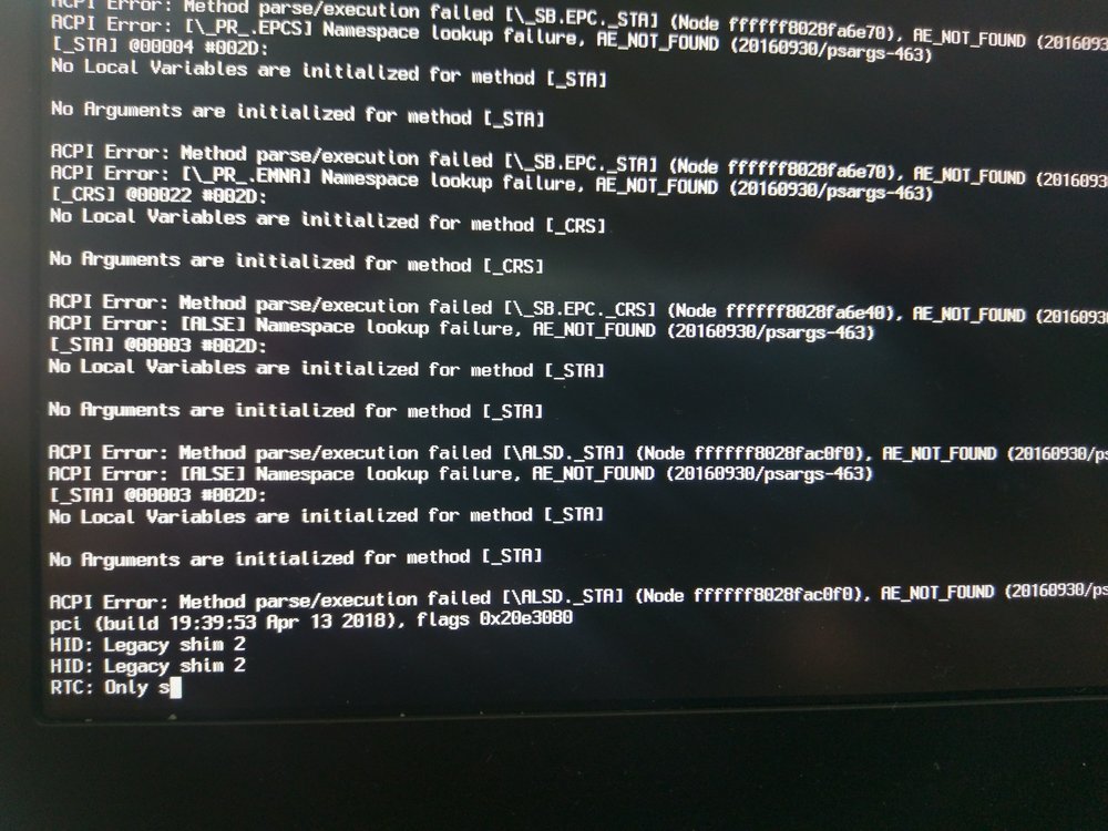Long time hackintosh user. I do have a Intel NUC 54250WYKH running High Sierra (can't find time to upgrade it). First time time installing on Dell E7470. Crash on first USB boot. Cannot get to Mac OS Installer. Stuck on Apple logo, progress bar with a very small percentage and a functional cursor, all that after all verbose finished loading. Tried High Sierra, Mojave and Catalina. Different USB drives. They all freeze at same moment with the same behavior. I really avoid opening new topics if there is any other that I can follow, but could not find other one alike this problem. Any help is appreciated. Followed the guides at https://osxlatitude.com/forums/topic/8506-dell-latitude-inspiron-precision-vostro-xps-clover-guide and https://osxlatitude.com/forums/topic/9179-dell-latitude-e7x70-clover-uefi-only/ to the letter. Things to note: BIOS: 1.22.8 I did not do not set DVMT to 96MB (0x3) since all bootpacks come with Lilu and WhateverGreen . BIOS settings: Set to Default and apply, SATA Operations = AHCI, Boot List Option to UEFI, Legacy ROM = Disabled, Secure Boot = Disabled, TPM = tried both Enabled/Disabled, Wake on LAN = Disabled, and Legacy ROM = Disabled. Clover (release 5100) with following settings: Install for UEFI booting only, Install Clover in the ESP, all other options to the letter . First copied (with replace not merge) the generic bootpack EFI_v5100.zip at the first guide, and then copied over (with replace) the E7470 bootpack at the second guide, usind the appropriate pack to whatever Mac OS version I was trying to install (E7470_1.17.5_HS, E7470_Mojave and E7470_Catalina) Just HSFPlus.efi, no VBoxHfs.efi // Just VirtualSMC.kext no SMCHelper and no FakeSMC . Updated Lilu to 1.4.0 and WhaeverGreen to 1.3.5 . Specs: Core i5-6600U, 8GB DDR4, Intel 520 graphics, 1440p touch screen ( ! ), 512GB LiteOn LGH-512V2G M.2 SSD (non NVMe), Broadcom DW1820A, Intel I219-LM ethernet. Steps considered: Used arguments -igfxvesa and -v Tried Clover r5070. Post my EFI folder and my F4 dump for the Mojave try. Any help is appreciated. Thanks in advance. EFI_joao.zip ACPI_origin.zip