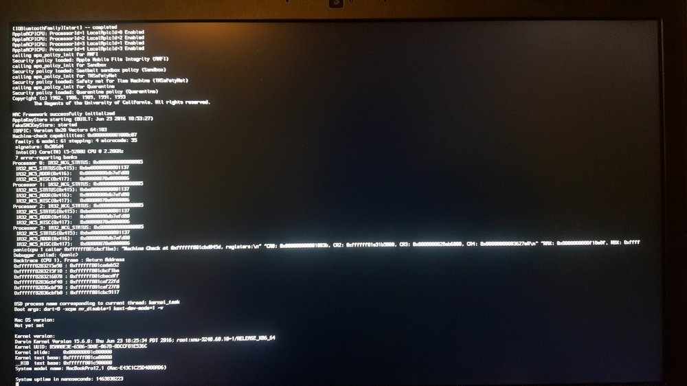 Hi. I new here. I followed Jake Lo's guide on installing OS X El Capitan 10.11.6 on E5550, but no success. I repeated and followed every step but it always failed to load. (Stuck at loading) I searched about this issue but couldn't find anything that would be of any help. I booted with -v in boot args and saw Mac OS version: Not yet set. I had to delete the files in EFI/Clover/ACPI/patched to make it run, but audio, bluetooth, web cam, card reader, & wifi (intel) don't work. I attached a picture that shows the booting process with -v and config file. Any help is appreciated! config.plist.zip