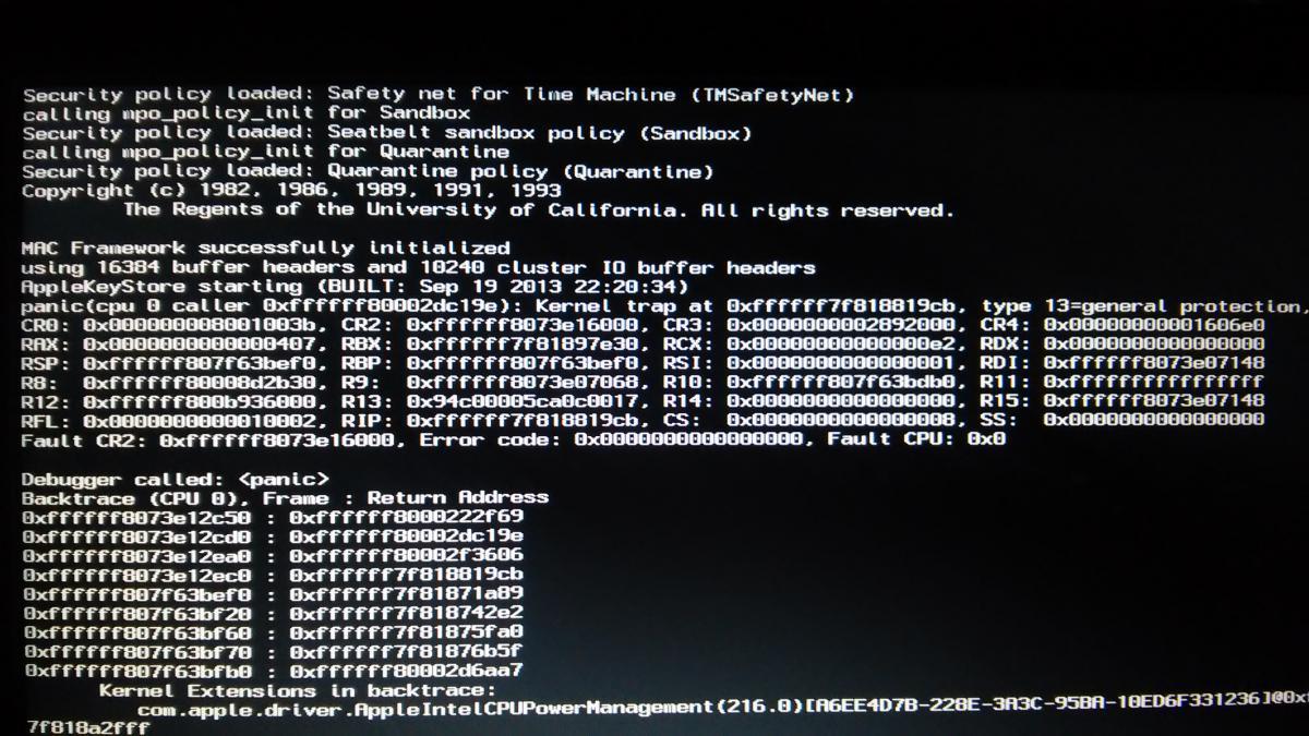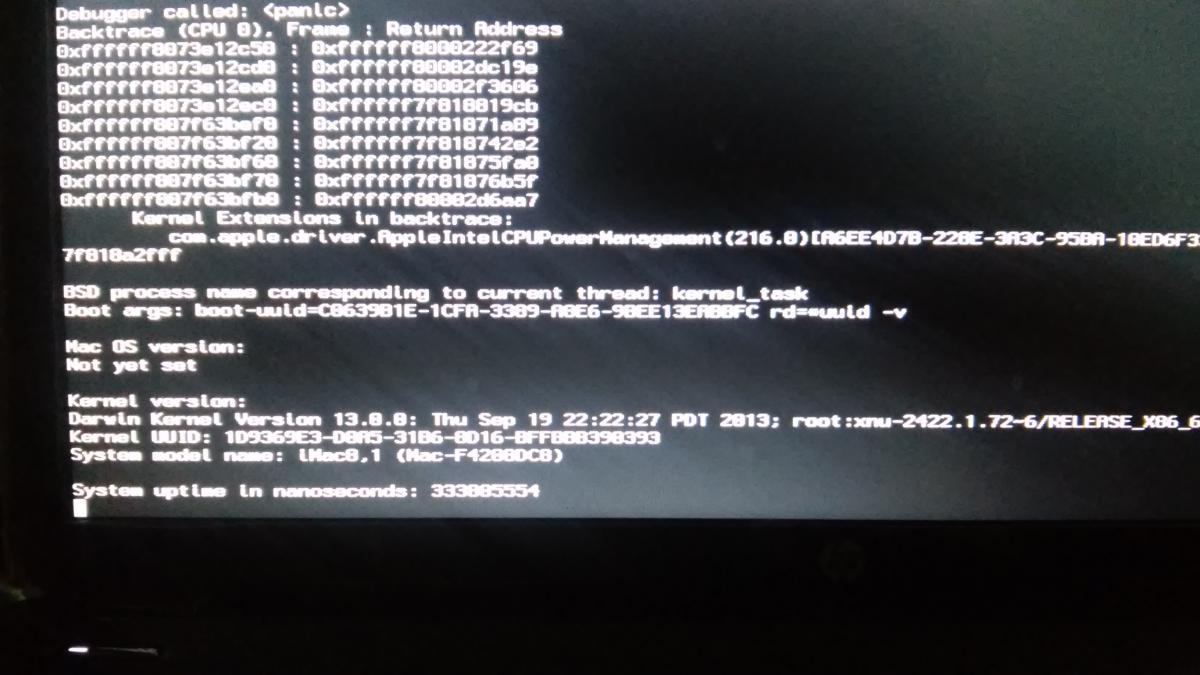 My configuration: HP g6 2320TX core i5 3rd gen 3230CPU @2.60GHz(4cpu) ivy bridge 4GB ddr3 ram intel hd4000 radeon graphics 7670M 1TB HDD First, i would like to thank for creating such helpful forum to support hackintosh. actually i have no any mac machine i have downloaded some images of mac from torrent out of which i m going to install mavricks 10.9 on my machine. after installation my hackintosh showing identifier as: iMac 8,1 to create bootable USB media i used ML in Vmware. unifail not worked for me so i decided to use myHack which works for me like charm.but still i have some problems as follows: 1. i can boot my hackintosh only in safe mode bcz kernel panic due to Applekeystore and AppleIntelCPUPowerManagement as shown in attachment. Boot argument used: -v GraphicsEnabler=no cpus=1 how to resolve this issue?? 2. also if i did not use cpus=1 it gives me apic lapic native error.....after some google ling i came to knew i have to use lapic kernel patcher. but my Q is should i patch kernel via patcher or via chameleon wizard??? 3. Currently only win7 bootloader is working i think myHack fails to install chameleon on EFI partition. i m booting hackintosh via myHack bootable USB. So shall i use Chameleon Wizard?? i dont know how to use it . 4. My Partition(GPT) map is as follows : Parition 1: 400MB recovery patition Parition 2: 260MB EFI System partition Parition 3: 352GB Mavericks Unallocated Space of 128MB Parition 4: 107GB Data Parition 5: 50GB Windows7 Parition 6: 148GB Data Parition 7: 250GB Data Parition 8: 24GB OEM Partition (but Windows 8 is deleted which was at 3rd patition) i dont want to loss Win7 connection as my all work is going on in win7 , So how to install chameleon bootloader successfully in 1st attempt without any issue so as to boot both Windows7 and Mavericks???? 5.shall i use multifail??? and how?? 6.What is FakeSMC ?? is it needed for me?? i have access to HFS+ partition from windows.So now whole picture is in front of you.....so i m very much confused that from which point should i start???? Plz tell me correct path or correct sequence to start work step by step........